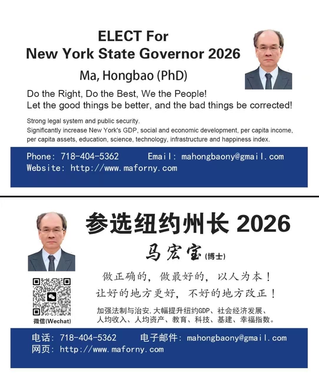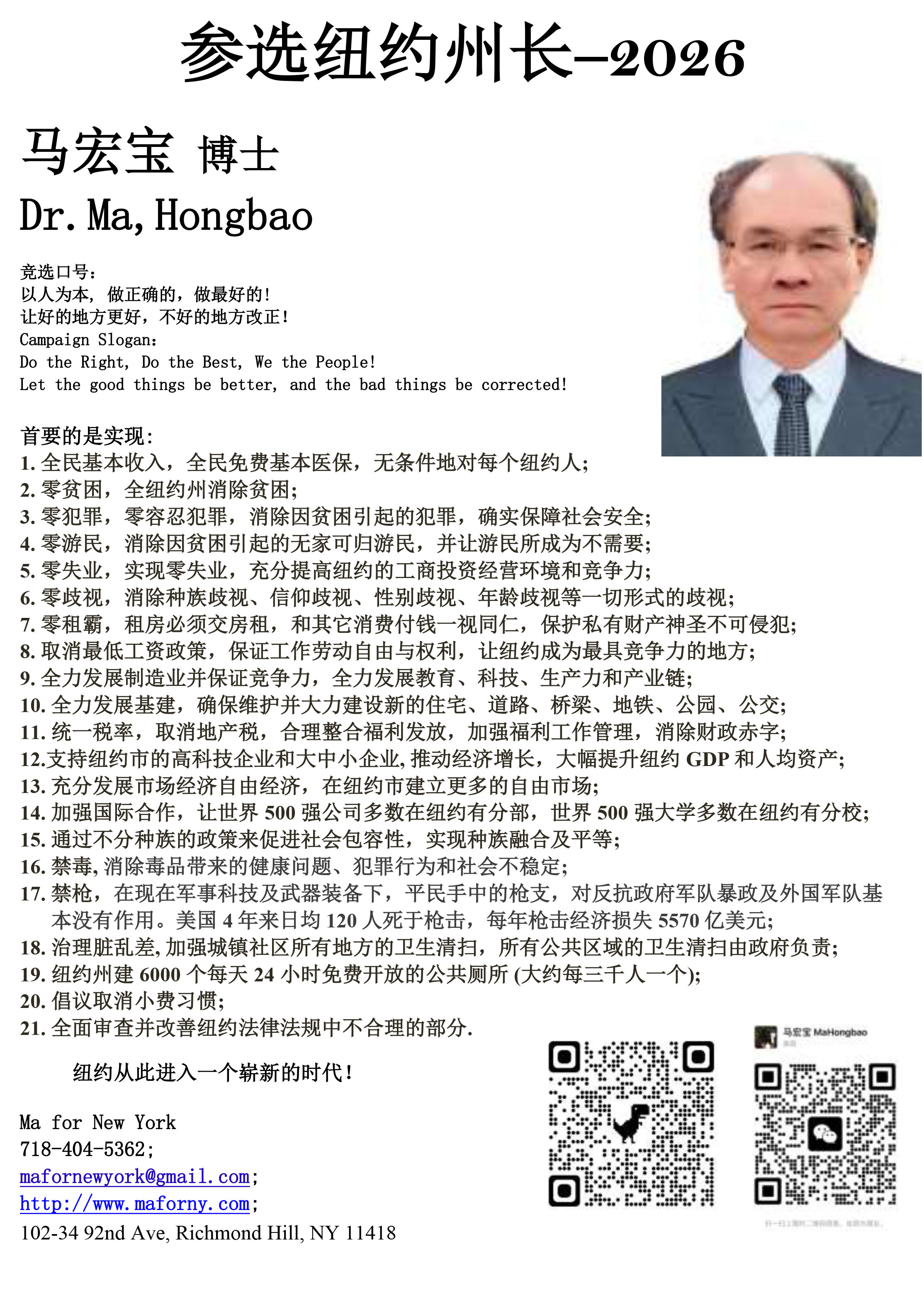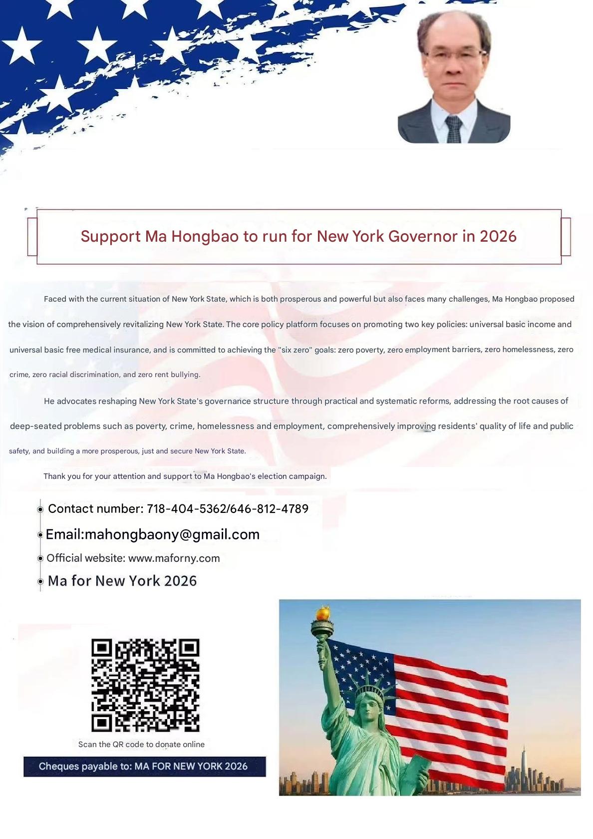 energy, and keep New York prosperous forever, Hongbao Ma decided to run for