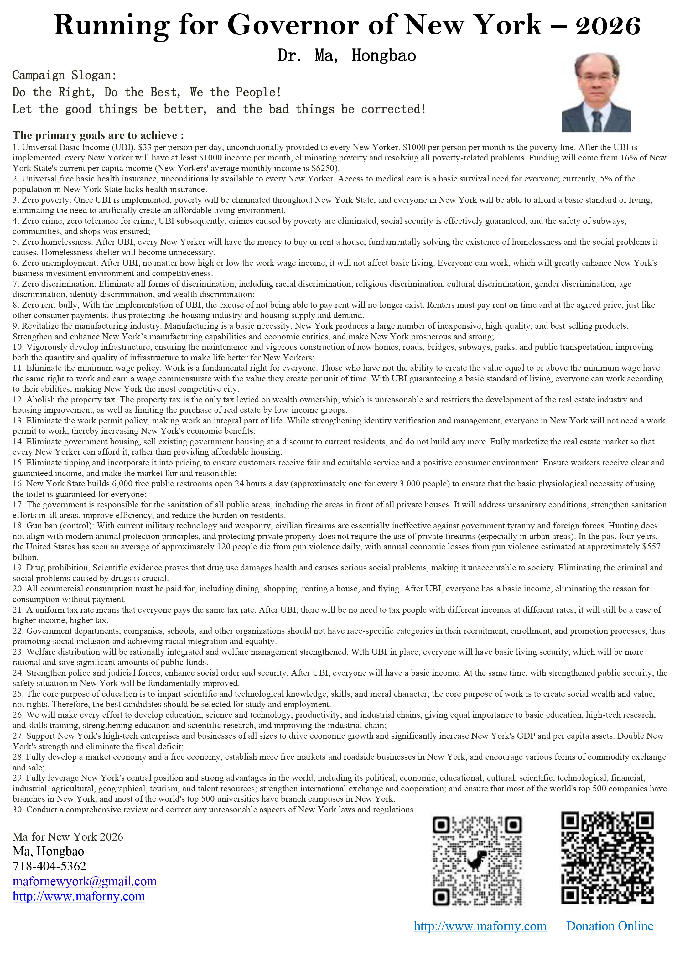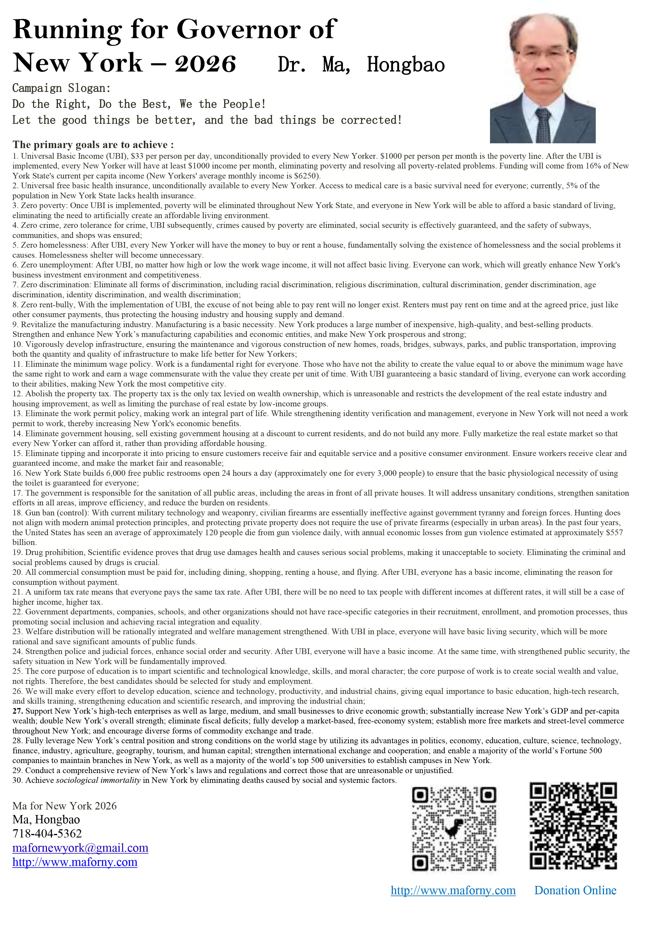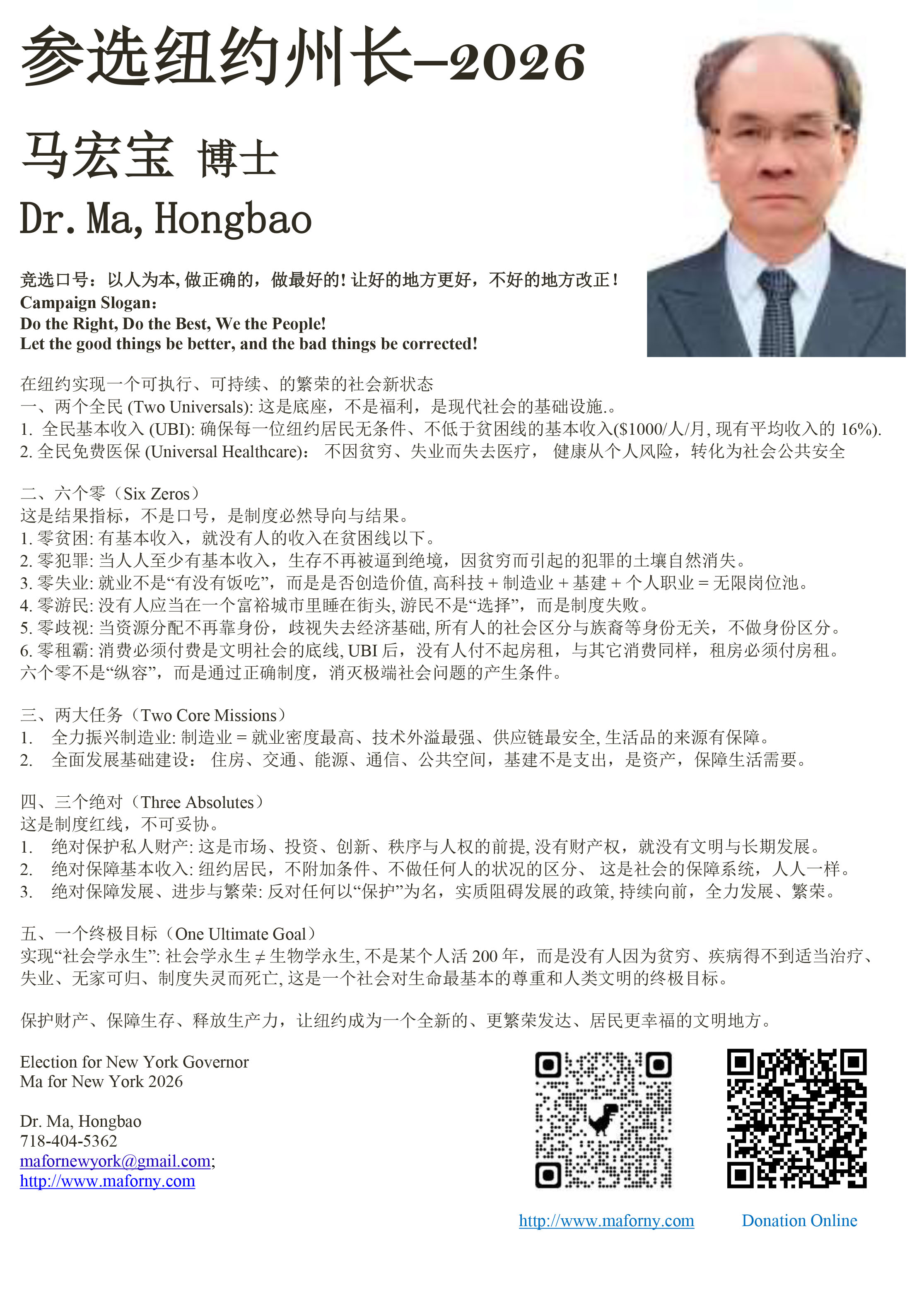 energy, and keep New York prosperous forever, Hongbao Ma decided to run for