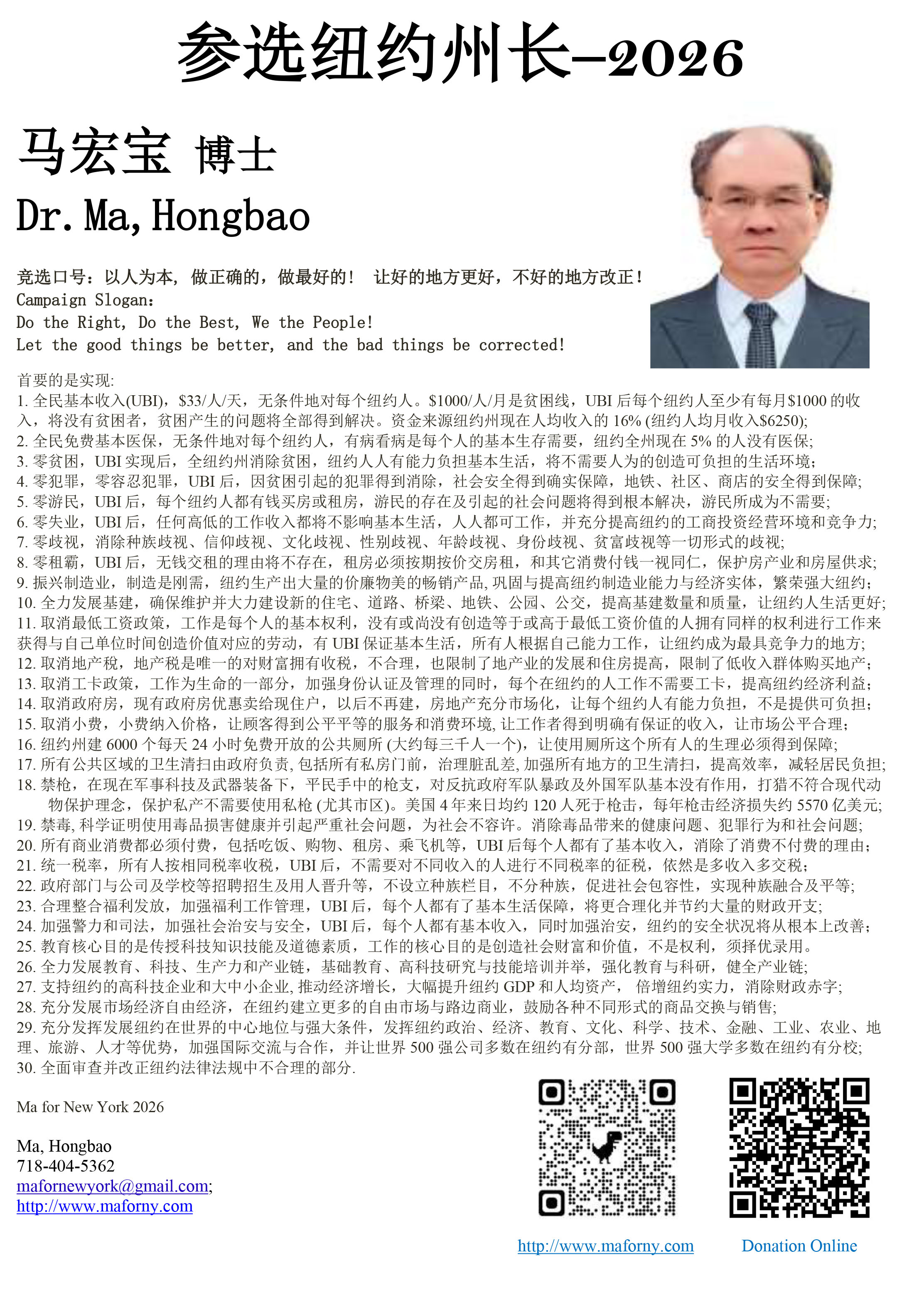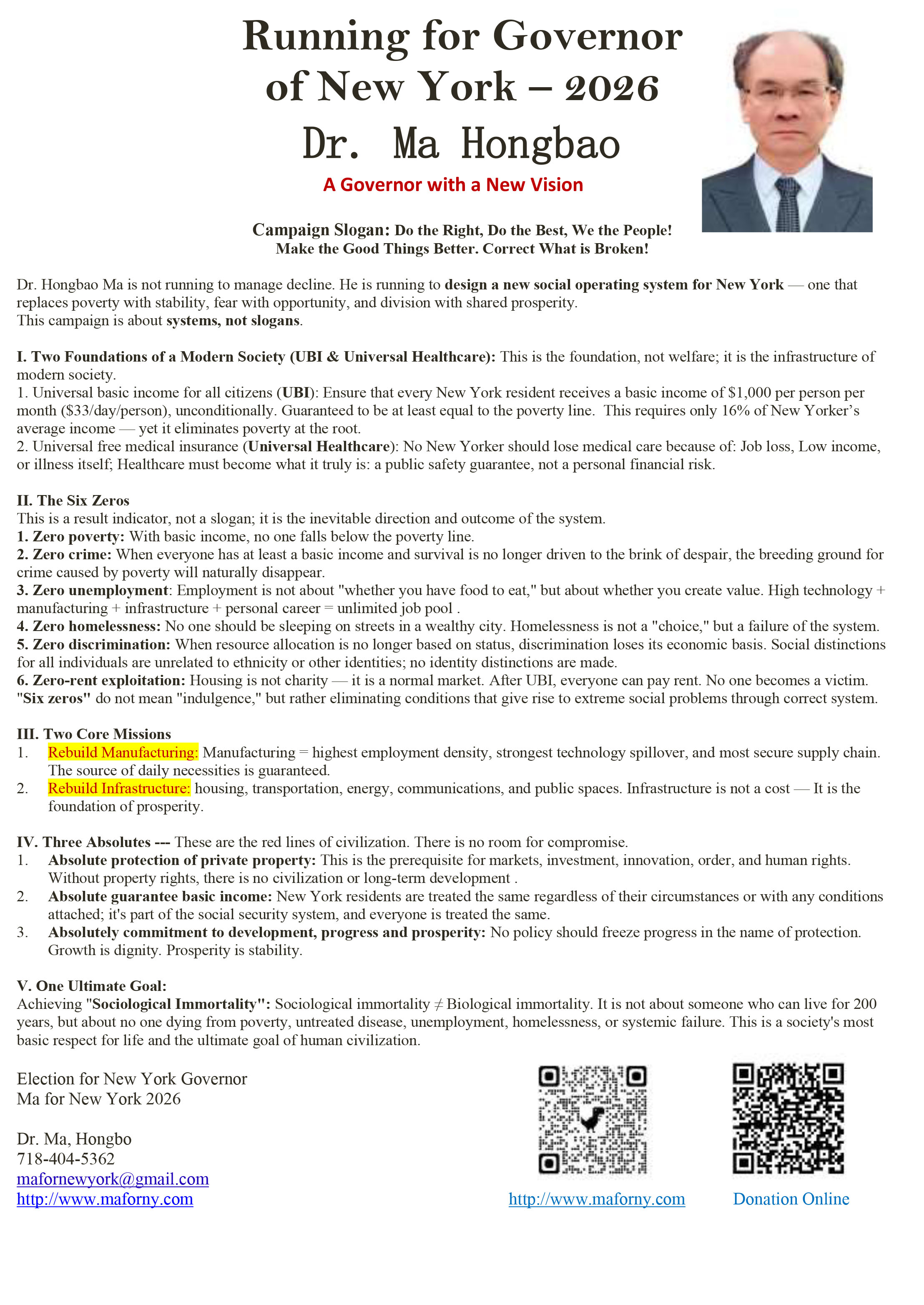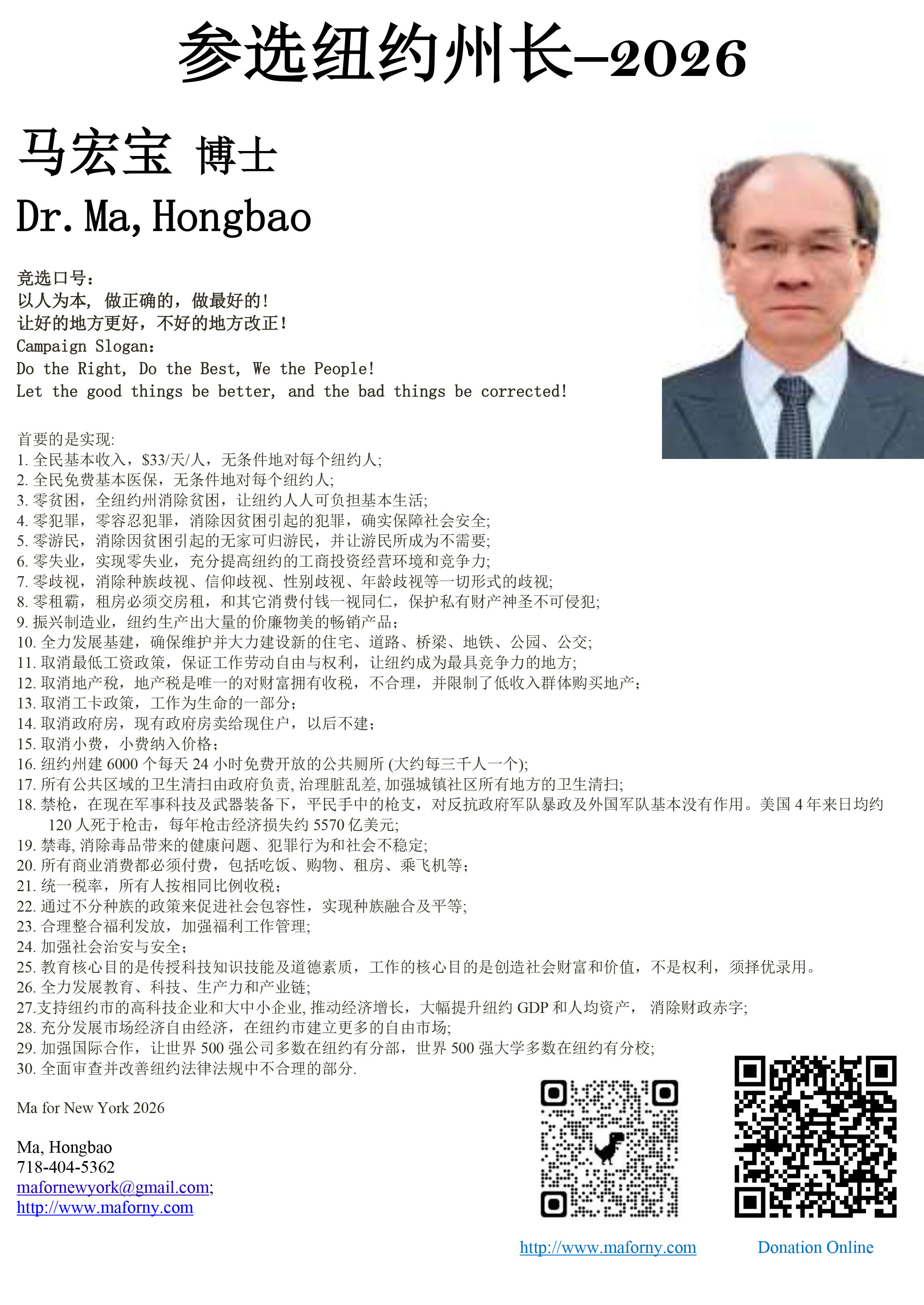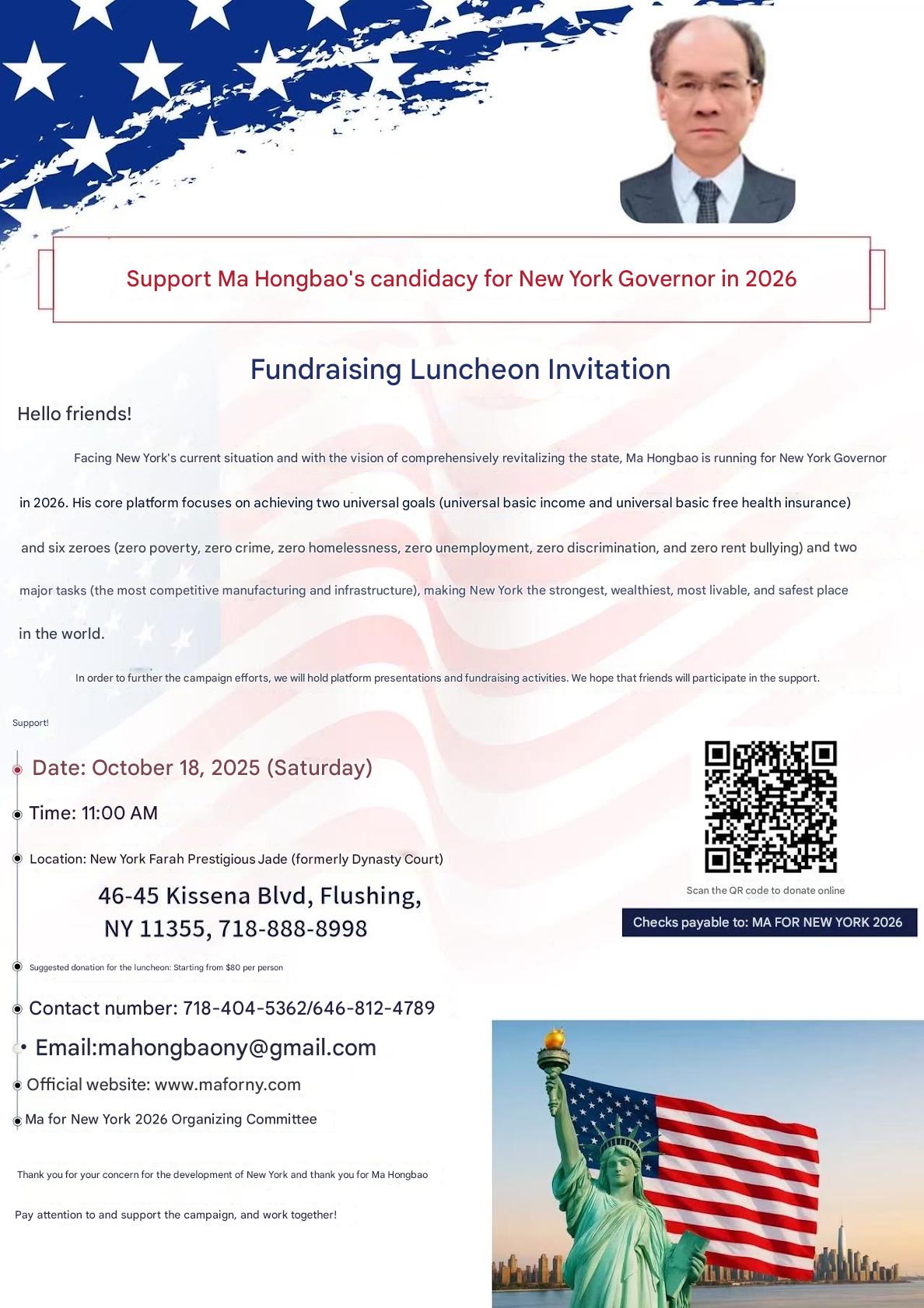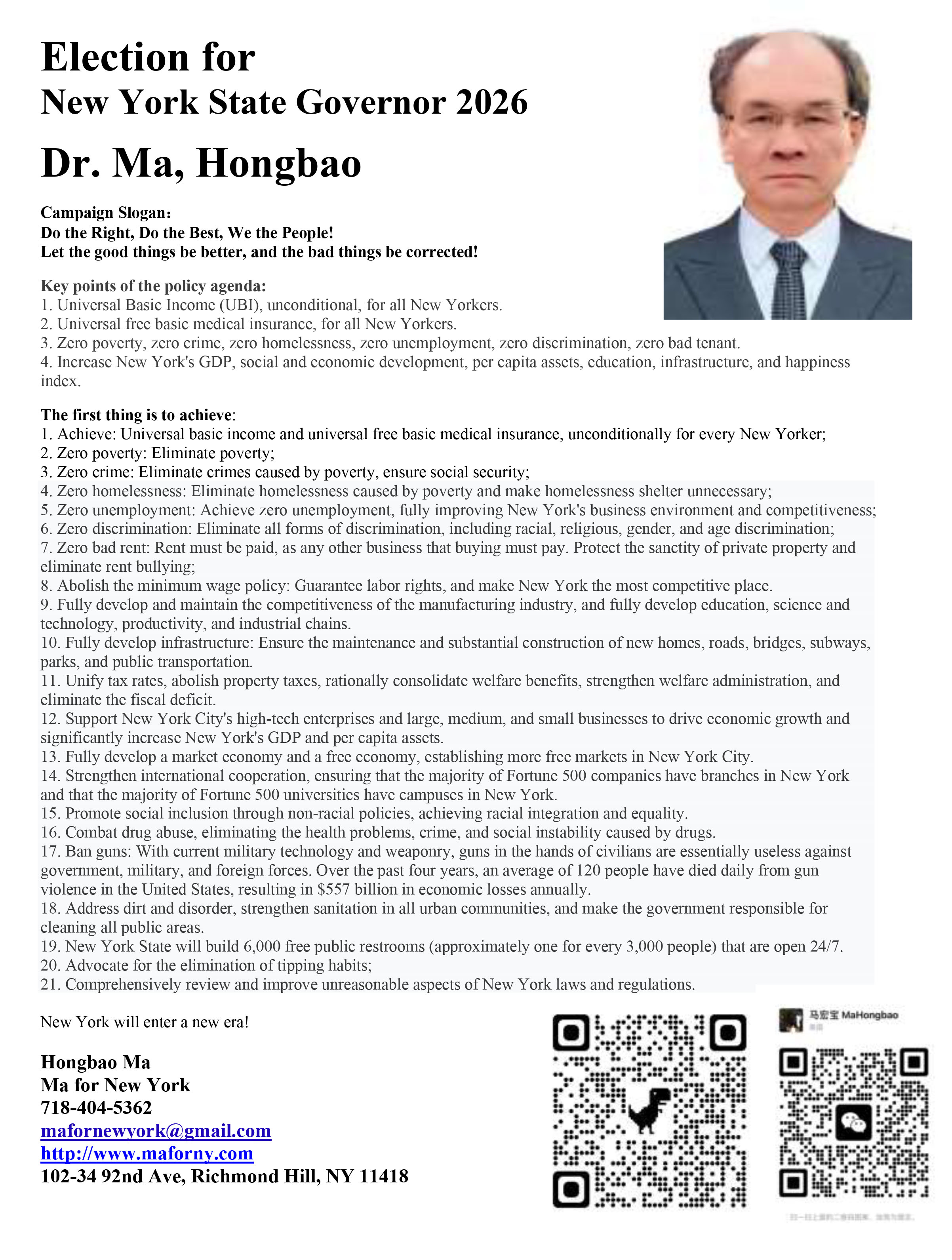 energy, and keep New York prosperous forever, Hongbao Ma decided to run for